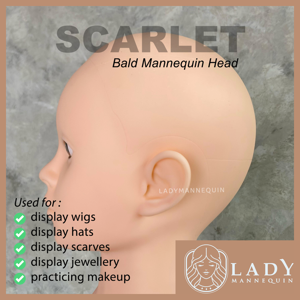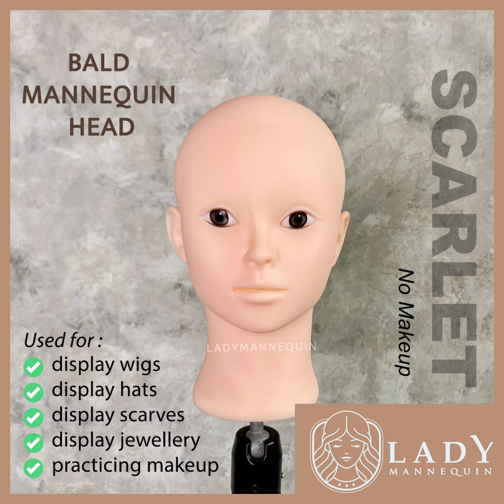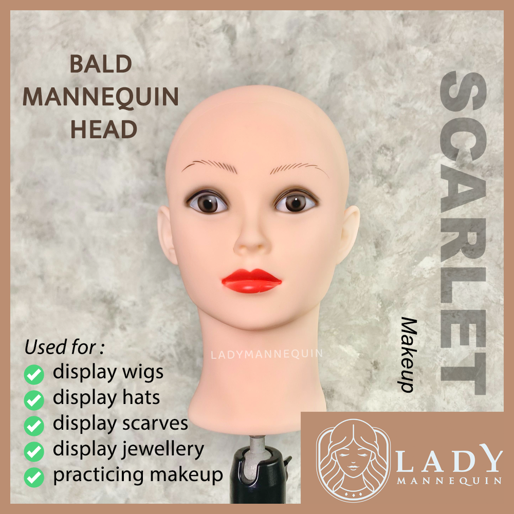 SCARLET Kepala manekin botak ini dapat digunakan untuk membuat dan memajang wig, cocok untuk semua jenis wig. Dan juga dapat digunakan untuk topi, helm, kacamata, topeng, atau tempat pajangan headphone. Barang berkualitas tinggi yang cukup mudah digunakan.
